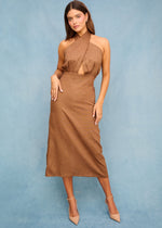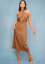 Expertly crafted from durable and breathable linen, this stunning red halter dress features a convenient back zipper and stylish open back design. Perfect for any occasion, this dress combines comfort and fashion for a versatile...
