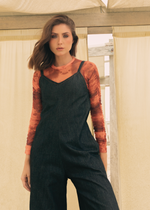 This denim jumpsuit features a flattering V-neckline and adjustable straps for a customized fit. Designed with practical in-seam side pockets and a metal zipper closure at the back, it combines style with functionality. The included...